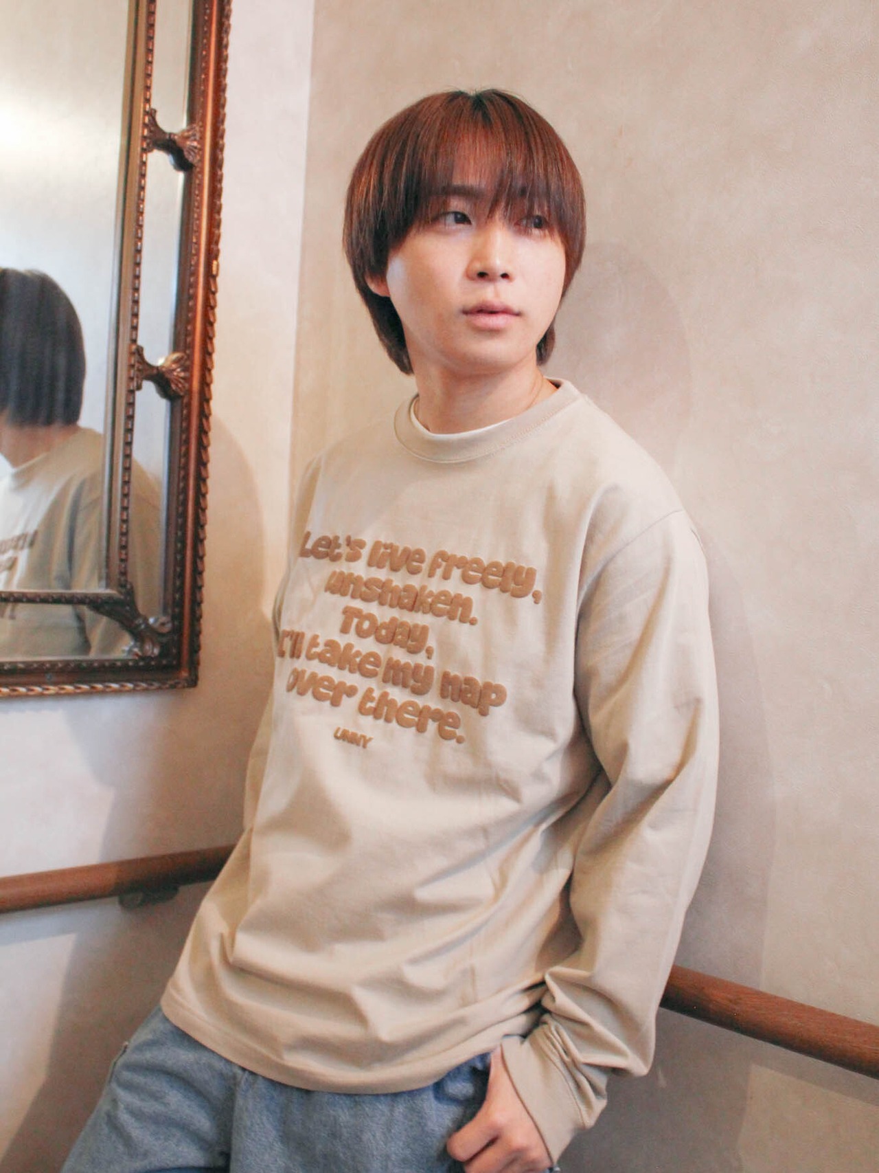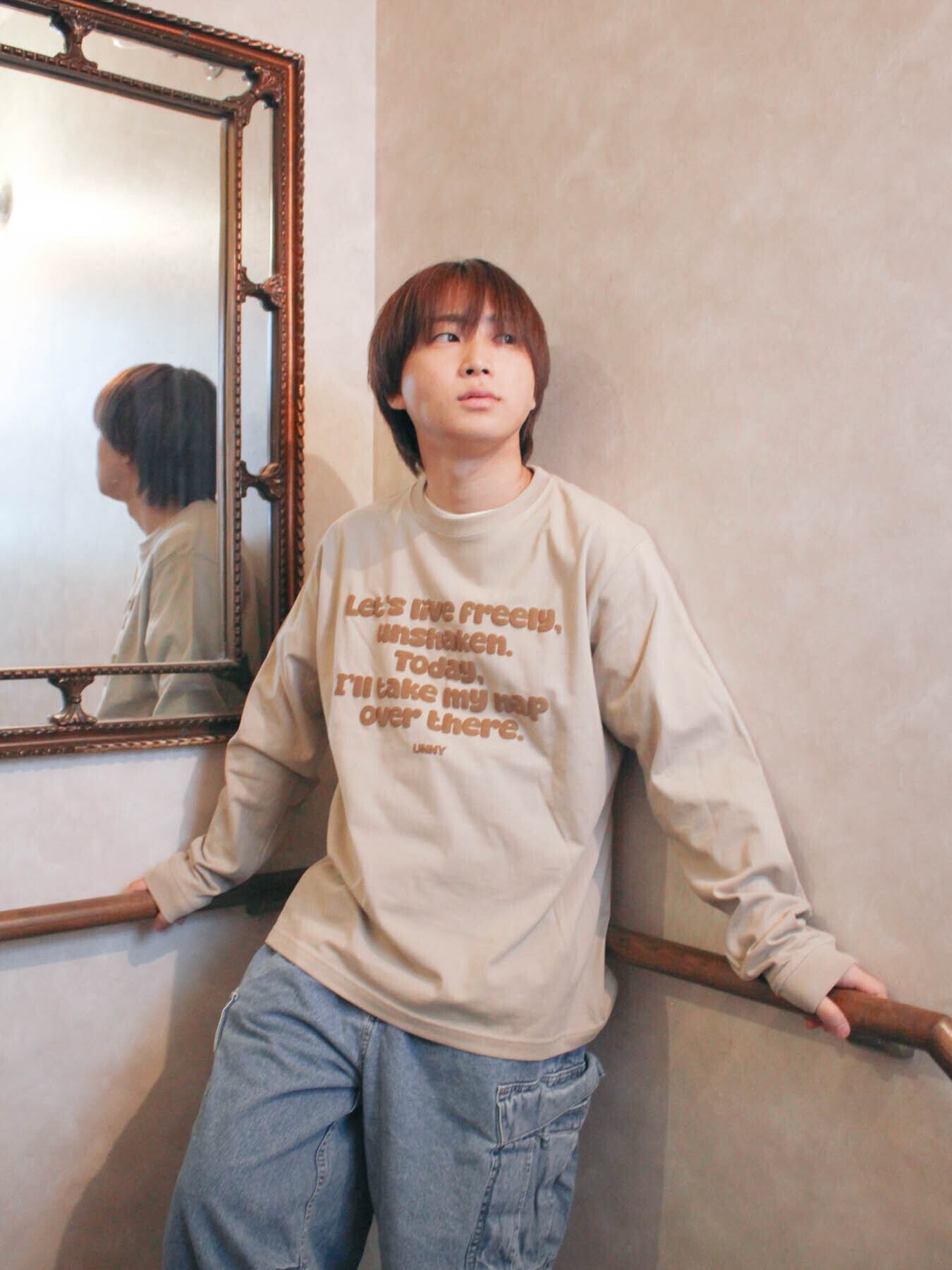 フロントにロゴをプリントしたロングスリーブTシャツ。