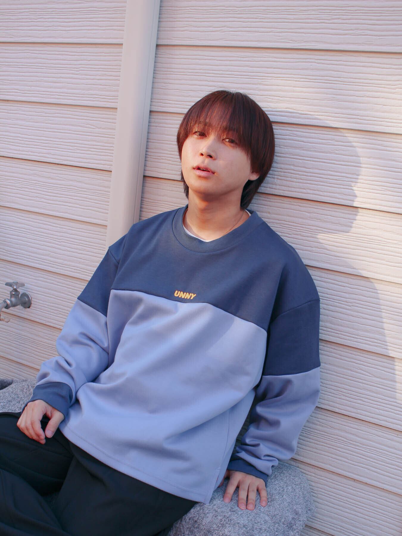 SIDE SLIT DESIGN SWEAT (BLUE×NAVY)