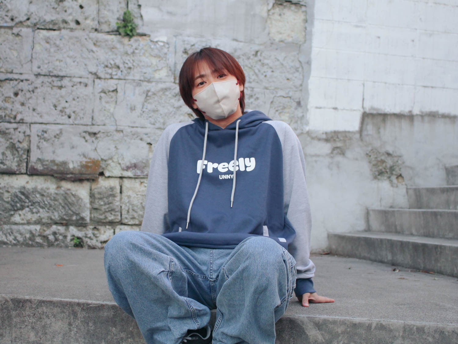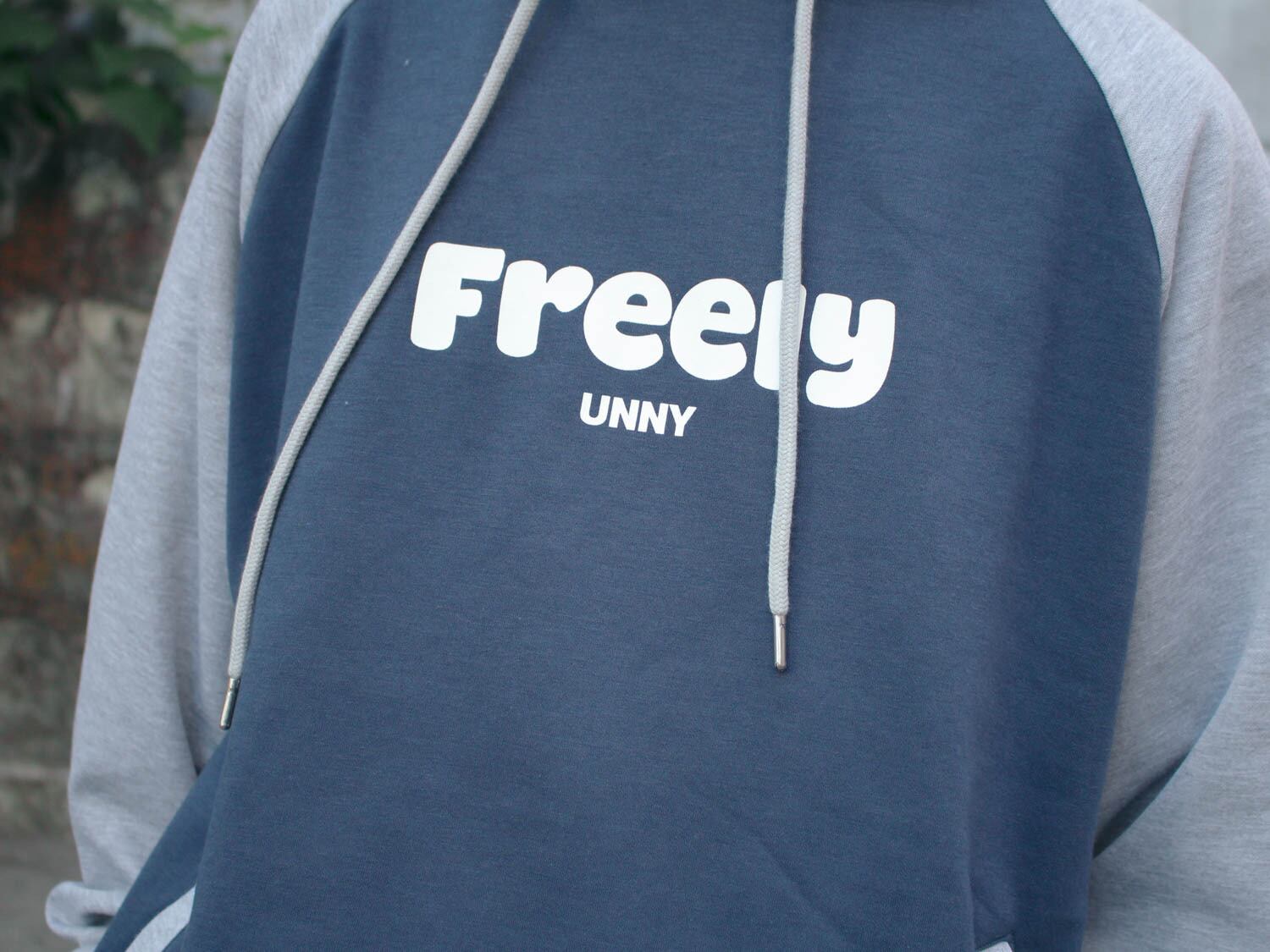 フロントにFreelyグラフィックプリント、襟もとにオリジナルネーム付き。