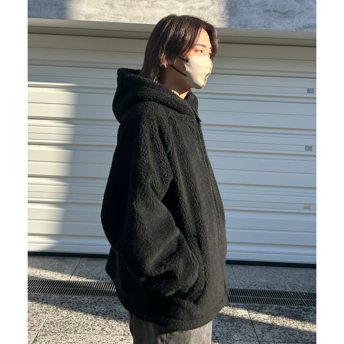 保温性と肌触りの良さが特徴のボアフリースを使用したフードジャケット。